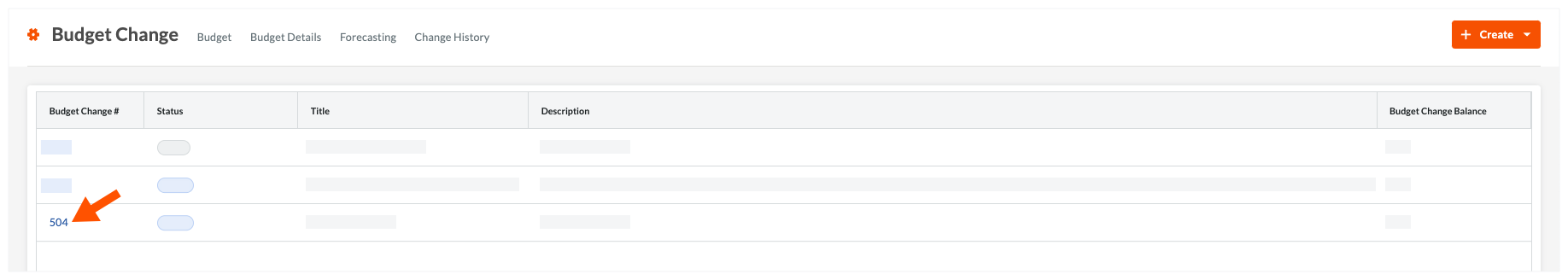 - 找到所需的预算变更。然后点击预算变更 #链接将其打开。