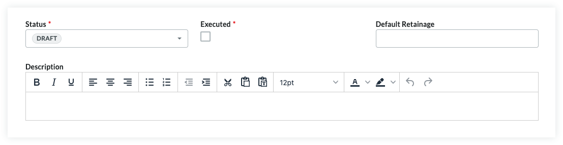 Procore 会自动为合同分配“默认”状态。要选择不同的状态,请从下拉列表中选择一个状态标签。选项包括