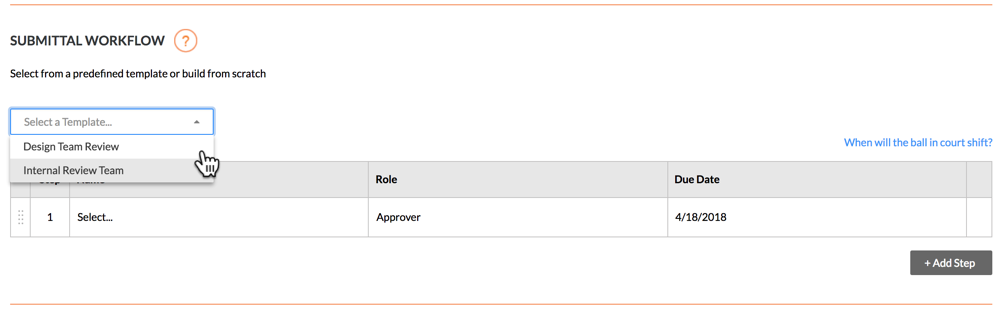 拥有项目送审工具“管理员”级别权限的用户可以创建一 (1) 个或多个送审流程模板,然后可以在首次创建时将其添加到新送审中。这可以防止每次创建送审时都必须添加新的送审工作流,从而节省了数据输入时间。